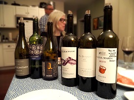 Second Place: Prats & Symington Post Scriptum de Chryseia 2019 (Douro). Tasters found scents of petroleum, tar, brown sugar, molasses, bicycle tube, asphalt, ash tray, and li hing mui. Andy thought that it "smells like a drag race." In the mouth there were notes of licorice, coffee, dark fruit, charcoal, and wood, the molasses and bitter chocolate on the finish. Mysterious, brooding, and tannic. David's favorite. 20 points. Andy's bottle. About $27.