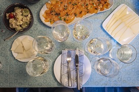 Casa d'Ambra Ischia Bianco 2022. Scents of chalkboard, crushed up shells, spearmint, graphite, marshmallow, Honeycrisp apple, honeysuckle, and a hint of cherry. A floral component reminded Josephine of a "wildflower meadow." Nice texture, with flavors of warm spices, toasty vanilla and coconut, then an apple pie finish. Rather rich. 14 points. David's bottle. About $23.