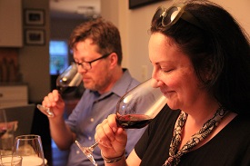 Third Place: Castiglion del Bosco Brunello di Montalcino 2012. More red than brown in color, with brighter aromas reminiscent of eucalyptus, rose petal, dust, pencil eraser, baby powder, Red Hots, and a subtle sweetness. Bright acidity on the palate reminded us of cranberries, but there was also a darkness to it, like prunes, rare steak, raisins, cola, leather, and black licorice. More tannic that some of the others. Plenty of dark fruit, powerful and dense. Holly's favorite. David's bottle. Received 11 points. About $50.