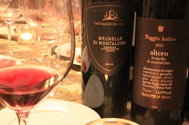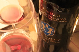 Villa Poggio Salvi Brunello di Montalcino 2013. Dusty on the nose, along with black licorice, tar, baby powder, and cough syrup. A little bit of basement, or something a bit funky, like rotted leaves. The dried leafy component reminded us of English breakfast tea or seaweed. Holly found "a room that's been closed up for a long time", while Andy noted "a new leather shoe that you wore all day". Violets on the attack, then some cranberry juice cocktail notes, along with spicy, peppery flavors, and slightly thinner in texture than the others. Good acidity. Pretty. Feminine. Holly described it as "pleasantly tart." Received 9 points. Michael's bottle. About $35.