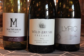 This month was a repeat of the October 2010 tasting, highlighting the vast growing area along California's central coast, where cool ocean air collides with warmth to produce prime spots for Pinot Noir. We sampled six bottles from four different appellations, and our results indeed showed a great deal of diversity, from darker, richer versions to lighter wines and higher acidity. All were from recent vintages.