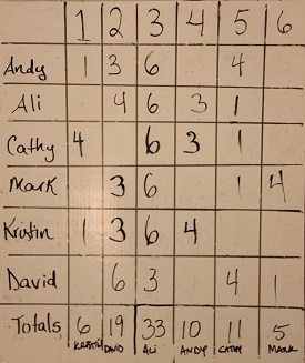 Ali's winner was a fantastic bargain from Monterey County at only $15, receiving the highest ranking from almost everyone, while the second place wine was a value bottling made by famed producer Etude. All entries received at least a few points.