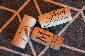 Joseph Carr Pinot Noir Josh 2016 (Central Coast). Tasters found aromas of cherries, autumn wet leaves, nail polish remover, cranberry, evergreen, Pine Sol, rocks, and wet earth hinting at decay. Cathy said that it was a "deep, hit me in the back of the throat kind of smell." Smooth palate, with plenty of acidity, but also balanced, with cherry on the attack, then violets and blueberry on the short finish. Some freshly brewed coffee notes. Ali noted "Red Hots" and "finished like Jell-O", while Mark responded with "I never thought of Jell-O as finishing." Received 6 points. Kristin's bottle. About $19.