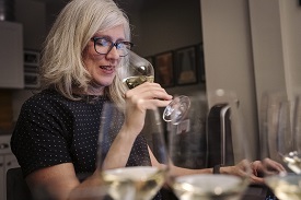 First Place: Château Nicot Entre Deux Mers 2020. Very perfumed, suggesting flowers, fresh yogurt, key lime pie, blood orange, barbecue spice rub, and lime peel. Tasters found a lot of ripe orange flavors, not unlike citrus oil, and had the most weight, plus a longer finish. Plenty of acidity, but also smooth across the palate. Andy, Kristin, David, and Cathy's favorite of the night, with a total of 32 points. Cathy's bottle. About $13.