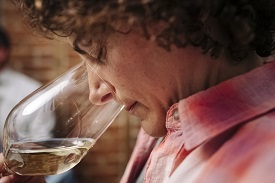 Château Graville Lacoste Graves 2019. Looked unfiltered. Some skunky, funky, scents initially, like dirty sponge, rubber, wet dog, and burnt protein. Improved with air, however, with notions of fresh herbs, scallions, and green stems emerging. Citrus flavors reminded tasters of lemon meringue. 7 points. Kristin's bottle. About $22.