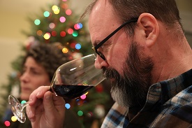 Château Moulin Haut Villars 2018 (Fronsac). Pretty nose, featuring scents of prune, lavender, violets, dark plum, and singed licorice. Gets a little dustier, along with notions of cedar wood and pine tree. Jamie felt that, "This is what I think velvet would smell like." Raw beef blood, vanilla, and black pepper on the palate, along with freshly brewed coffee and licorice on the long finish. David felt that it tasted "like a hot cast iron pan." 7 points. Jamie's bottle. About $25.